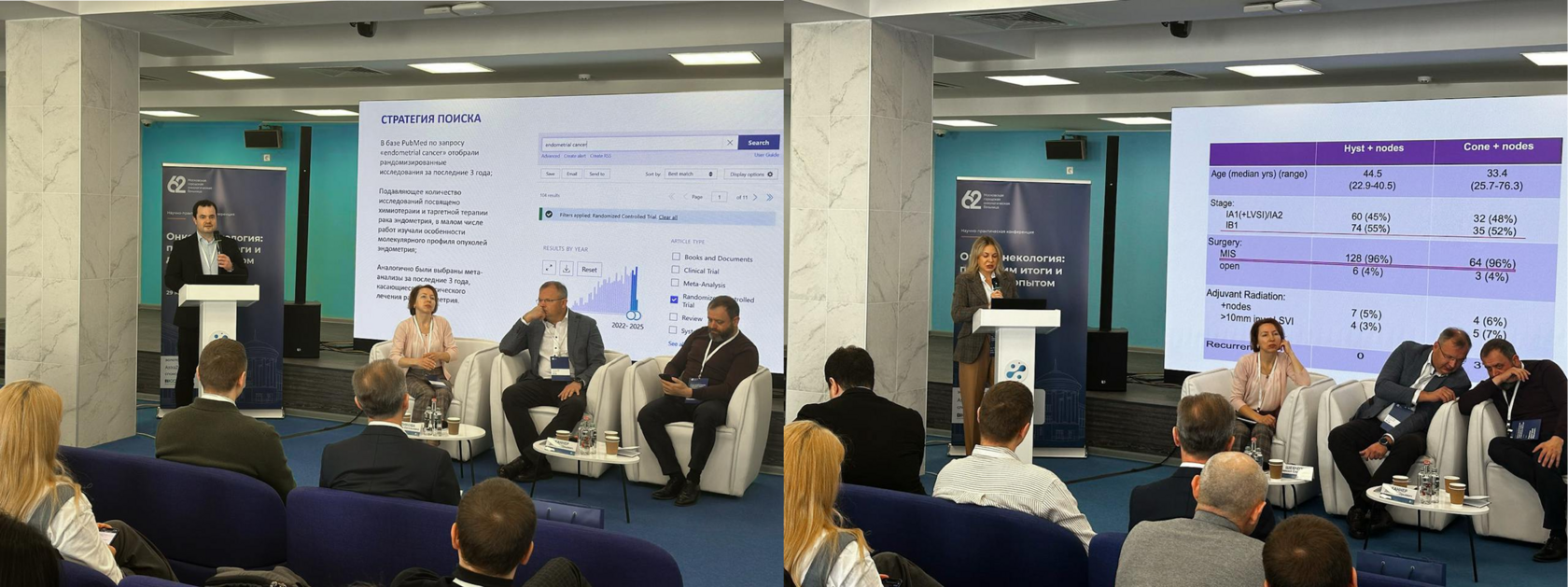 Обсуждали ключевые мировые исследования и технологические тенденции в лечении рака шейки матки, яичников и эндометрия. Особое внимание было уделено современным подходам к диагностике и терапии — от хирургических решений до лекарственного лечения.